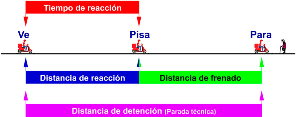 Es la distancia que recorre el vehículo desde que el conductor acciona el freno hasta que consigue detenerlo. Esta distancia depende de: