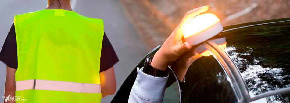 - Señalizar el vehículo mediante el dispositivo luminoso de preseñalización de peligro (señal V-16), antes de abandonar el vehículo (colocándolo con la mano sobre una parte metálica lo más visible posible). Además, se debe hacer uso de luces de emergencia, etc.