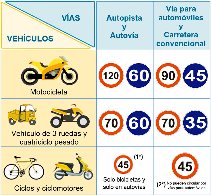 2* Solo aplicable a carreteras convencionales, no pueden circular por vías para automóviles.