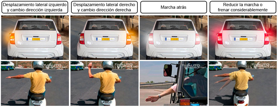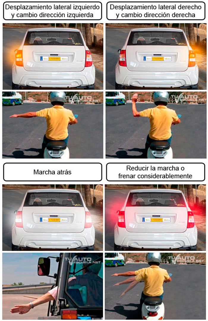 • o, en su defecto, el brazo (para que las señales sean válidas deben hacerse correctamente y ser visibles para todos los usuarios. Generalmente, se utilizará el brazo izquierdo).