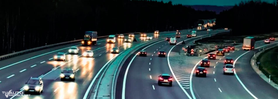 Se entiende por vía insuficientemente iluminada aquella en la que no se puede leer la placa de matrícula de otro vehículo a 10 metros de distancia o no se distinga un vehículo pintado de oscuro a 50 metros.