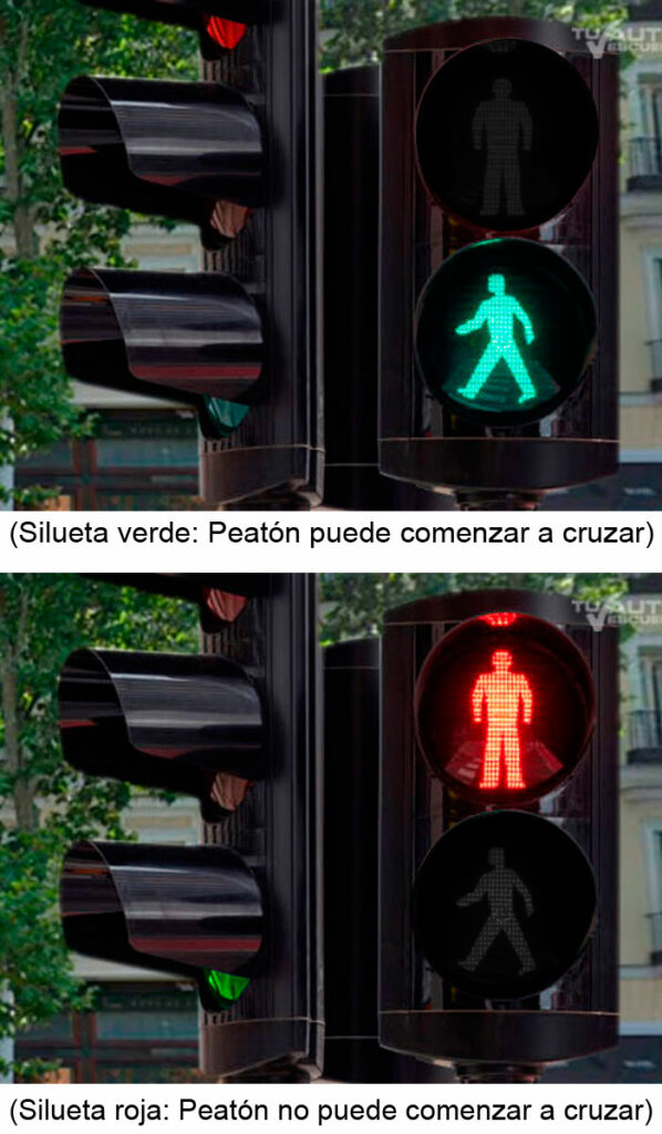 Indica que el tiempo que tienen para terminar de cruzar la calzada está a punto de finalizar y que se va a encender la luz roja.
