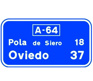 Indica, en una autopista o una autovía, la dirección propia de la carretera por la que se circula y las direcciones de los ramales de dos salidas consecutivas. También indica la distancia a dichas salidas, los números o el número y letras de cada una de ellas.