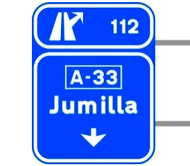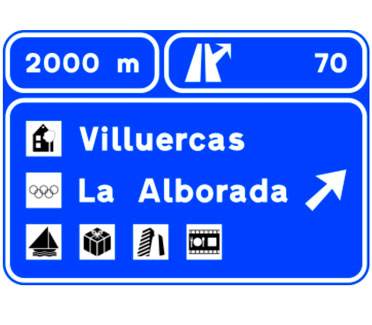Indica, en una autopista o una autovía, los destinos de la salida del próximo enlace. También indica la distancia a dicha salida, su número y, en su caso, la letra.