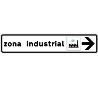 Indica, en una carretera convencional o una carretera multicarril, la proximidad de una salida hacia los servicios señalizados tales como urbanización, puerto deportivo, zona deportiva, zona comercial, polígono industrial, parque empresarial y zona de ocio. En el cajetín superior figurará la distancia a la salida.