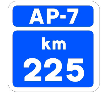 Indica el punto kilométrico de la autopista de peaje cuya identificación aparece en la parte superior.