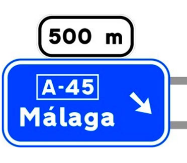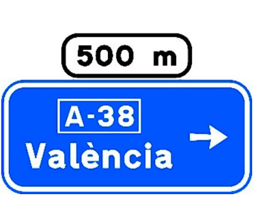 - Señales de preseñalización en carreteras convencionales y multicarril: llevan un panel indicando la distancia a que se encuentra la salida.