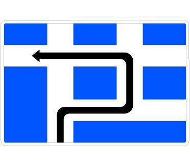 Indica el lugar de salida de una autopista o una autovía hacia una autopista o una autovía. La cifra indica el número del enlace, que se corresponde con el punto kilométrico de la carretera.