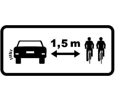 Recuerda, bajo la señal vertical correspondiente, la anchura de seguridad mínima que debe guardarse en caso de adelantamiento a un ciclo o ciclomotor, o, en ambos casos, conjunto de ellos.
