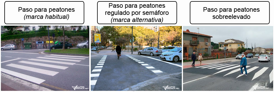 Formado por una serie de líneas de gran anchura, dispuestas en bandas paralelas al eje de la calzada y formando un conjunto transversal a la misma. No podrán alternarse líneas de otros colores con las blancas.